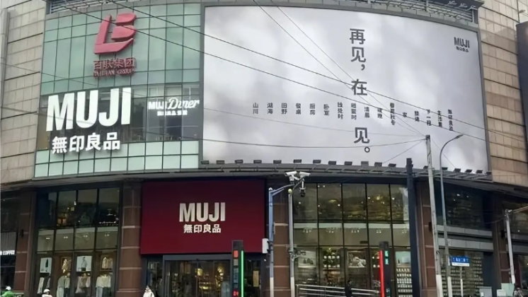 3月4日、中国で最もにぎやかな商業エリアの一つである上海淮海路755号にあるMUJI旗艦店(フラッグ・シップ・ショップ)に「再見(サヨナラ/また会いましょう)」と大きく書かれた広告が掲出され、開業から10年以上にわたり淮海路商業エリアのランドマーク的存在だった店舗が閉店のカウントダウンに入ったことがわかった。ここはかつて中国最大のMUJI旗艦店だった。